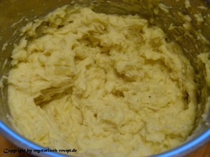 Tip: Es ist wichtig, dass die Kartoffeln noch sehr heiß sind, denn nur dann kann die Stärke in den Kartoffeln tun, was sie soll … nämlich Milch und Fett binden und so einen schön saftigen Kartoffelbrei / -püree präsentieren.