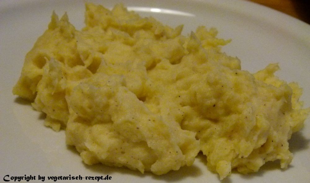 Wenn es ein richtiger Brei werden soll, dann mach mehr davon rein. Anstelle der Milch oder Sahne kannst Du auch das aufgefangene Kartoffelkochwasser nutzen. So kriegst Du einen noch „kartoffeligeren“ Geschmack hin.