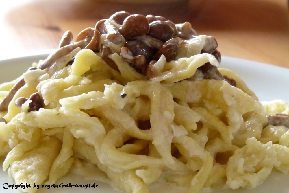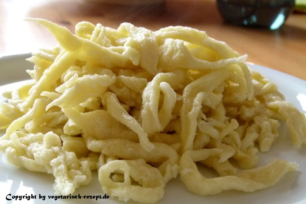 Wenn Du Deine Spätzle selber machst, dann hat es den Vorteil, dass Du Dir, wenn Du magst, sogar Vollkornspätzle machen kannst. Bei Vollkornmehl braucht man etwas mehr Wasser. Ansonsten bleibt alles gleich.