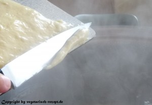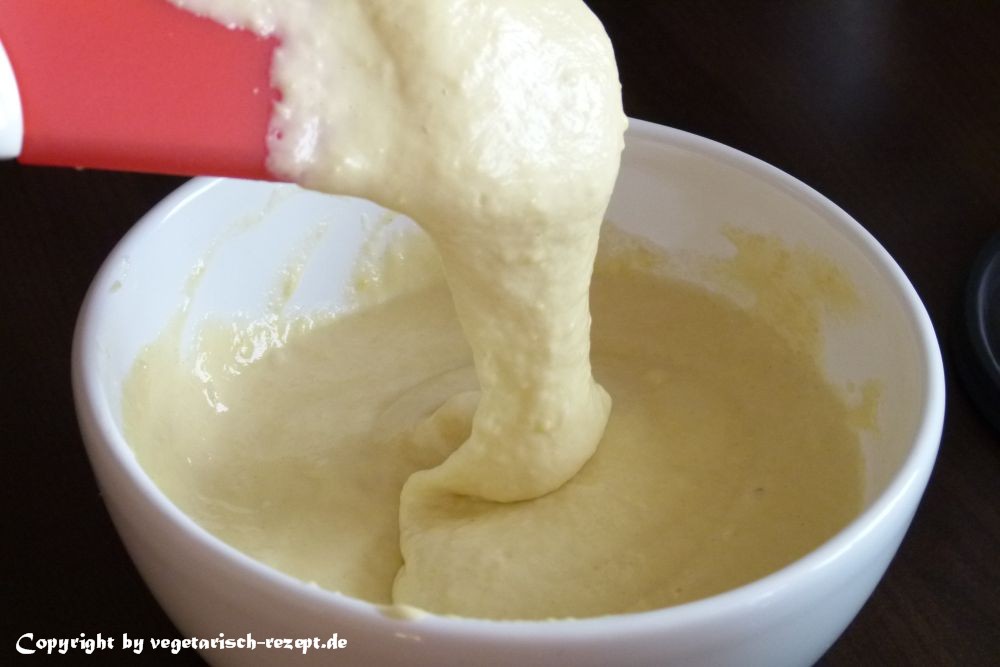 Für die Teigherstellung einfach alle Zutaten aus dem Rezept zu einem zähen Teig verrühren. Am einfachsten geht es natürlich mit einer Küchenmaschine oder mit dem Handmixer. Alternativ natürlich auch per Handbetrieb und Kochlöffel Braucht aber mehr Kraft und Zeit.