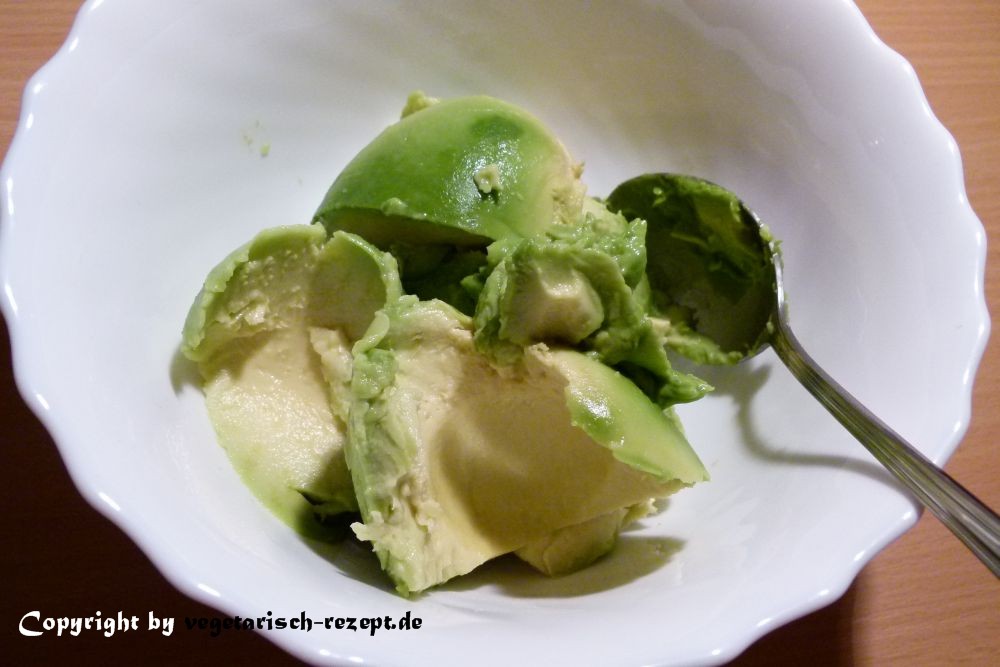 Wenn Du zwei Hälften hast, dann kannst Du die eine Hälfte mit einem Löffel ausschaben und bei der zweiten Hälfte erst den Kern rausnehmen (Achtung, der ist sehr glitschig ;-)) und anschließend auch hier das Fruchtfleisch herausschaben.