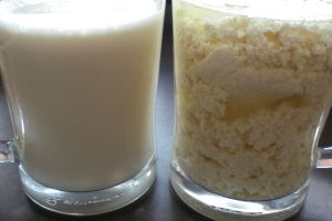 Wenn man die Säure zur Milch gibt, dann klappt es nicht. Dann wird es nur etwa wie Dickmilch, aber nicht mehr.