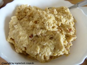 Die zweite Variante, die ich ausprobiert hatte, war etwas fester in der Konsistenz und etwas trockener. Wenn Du sie aber gerne fester magst, dann gib einfach zusätzlich noch 30g Milch und 5EL Mehl dazu. In diesem Fall kann man die Bratlinge auch mit der Hand formen, ähnlich wie Frikadellen…