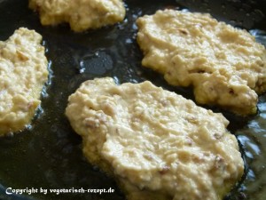 Nun den Teighaufen mit einer Gabel etwas platt drücken und anbraten. Und schon sind Deine Bratlinge fertig.