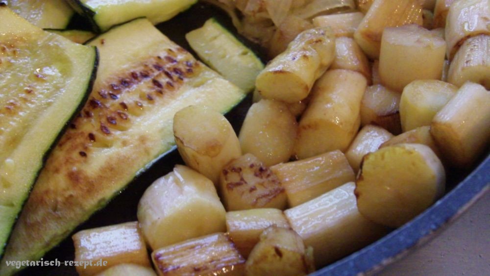 Verwendetes Gemüse: Spargel, Zucchini, Zwiebeln, Möhren und Rosenkohl.