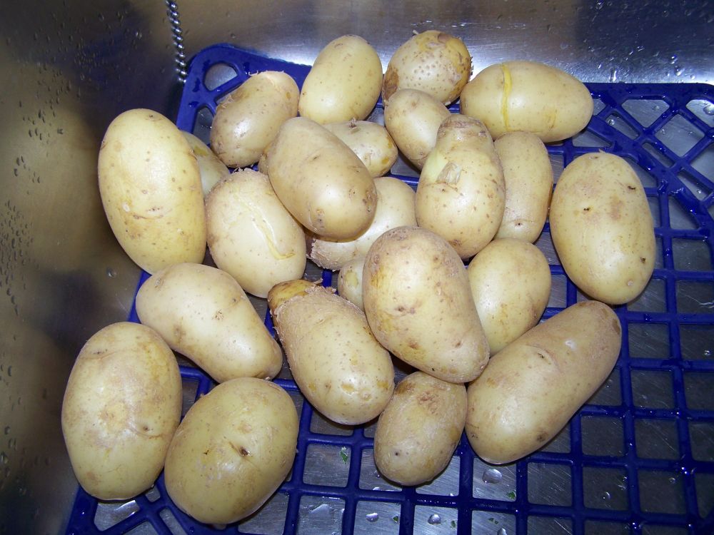 Die Kartoffeln als Pellkartoffeln knapp gar kochen.