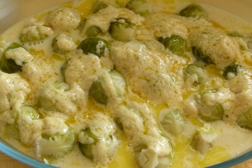PS: Wenn Du Eier isst, dann kannst Du die Mehlschwitze weglassen und statt dessen einfach 3-4 Eier mit Milch und Gewürzen mischen und über den Rosenkohl geben.