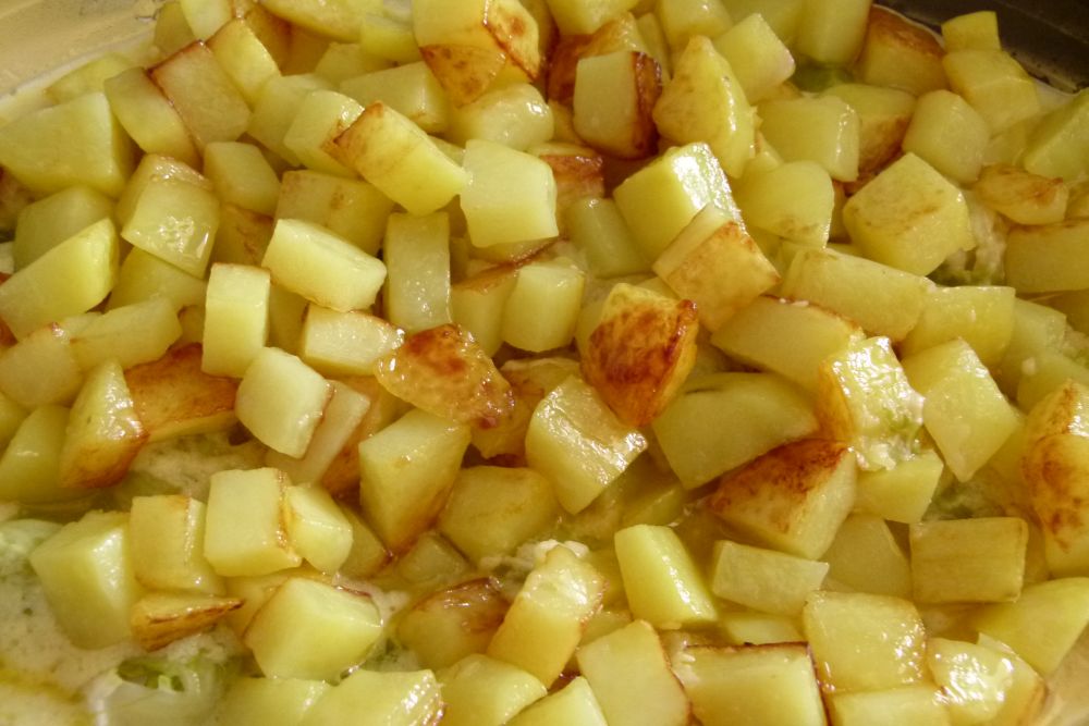 Dann kommen die angebratenen Kartoffeln drüber und …