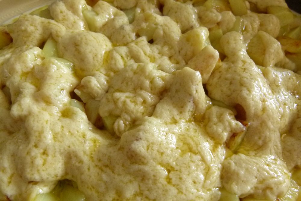 Nun fehlen noch die Auflauf-Soße und der „Käse“. Die Zutaten und die Zubereitung für den Käse (also für den Hefeschmelz ) findest Du hier.