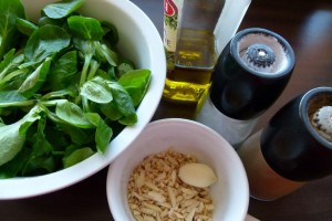 (Ich habe zuerst die Hälfte des Feldsalates mit den restlichen Zutaten gemixt und dann die andere Hälfte Feldsalat dazu gegeben … hat nicht alles beim ersten Mal rein gepasst)