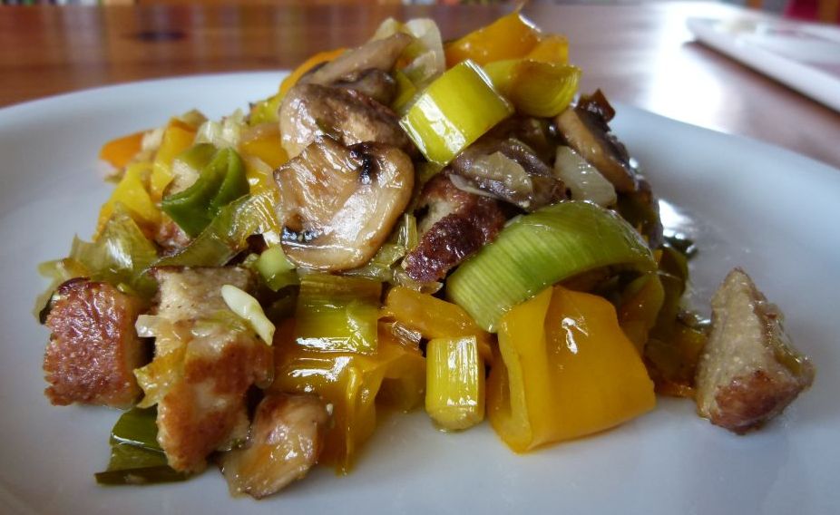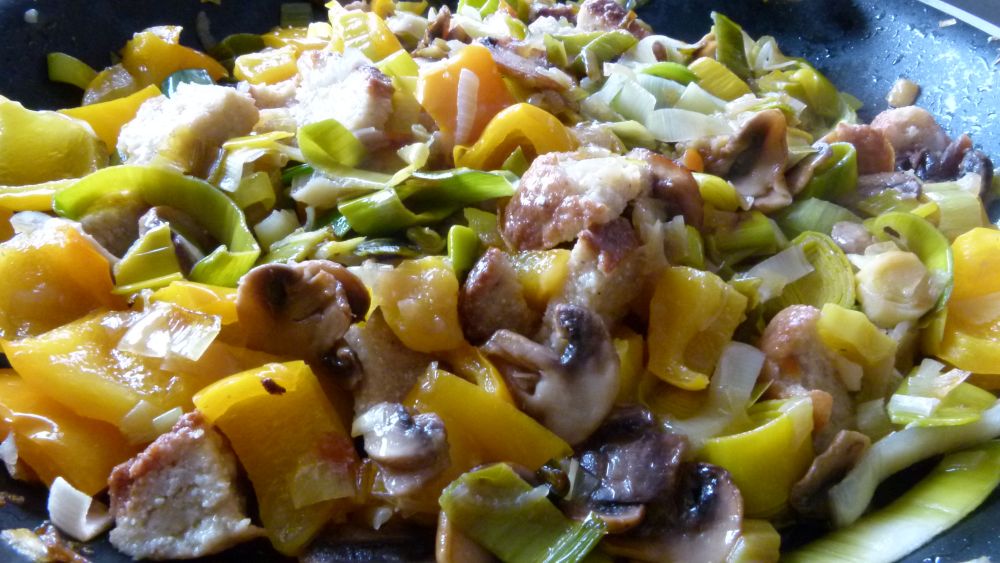 und mit dem Gemüse in der Pfanne nach Belieben anbraten.