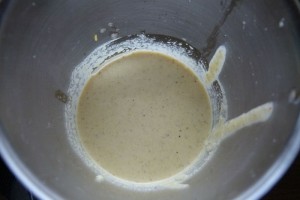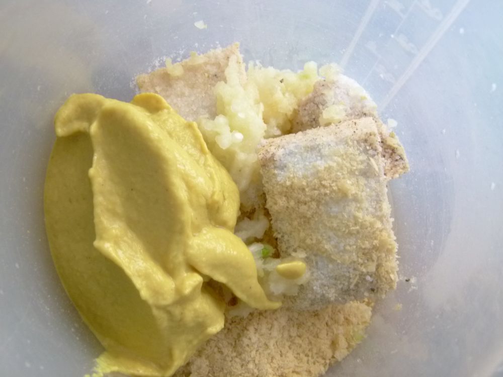 In einer Schüssel nun Mehl, Gluten und Semmelbrösel mischen und die Tofusoße dazu geben. Alles gut miteinander verrühren.