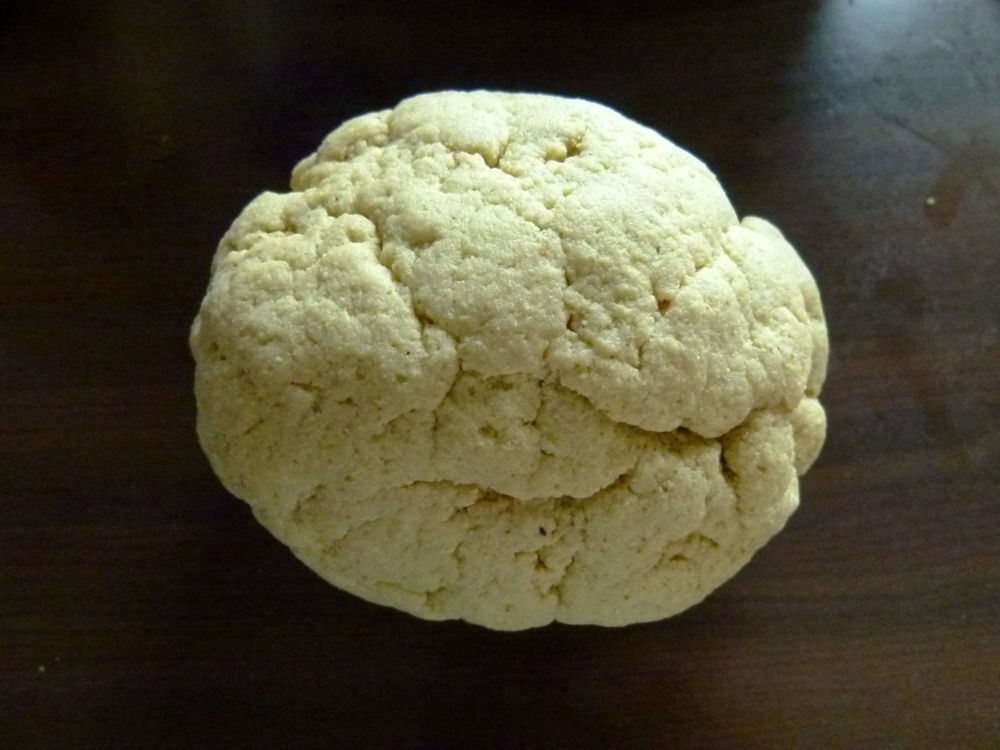 Sollte es trotz kräftigem Kneten nicht zusammen halten, dann einfach noch etwas mehr Wasser dazu geben. Am besten esslöffelweise, damit es nicht ZU viel wird.