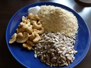 Sonnenblumen- und Cashewkerne, Salz und Hefeflocken.