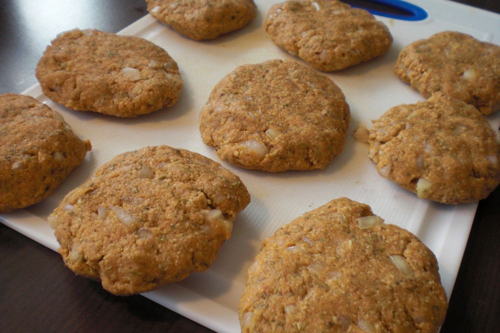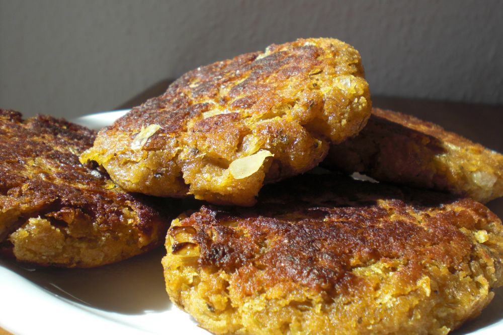 So ähnlich mache Ich meine Bratlinge allerdings auch. Ich nehme dafür aber Kidneybohnen aus der Dose. Muss man nicht einweichen. Und ich Püriere es nicht sondern zerdrücke alles mit einer Gaben, bei einer grossen menge nehme ich den Kartoffelstampfer zur Hilfe.