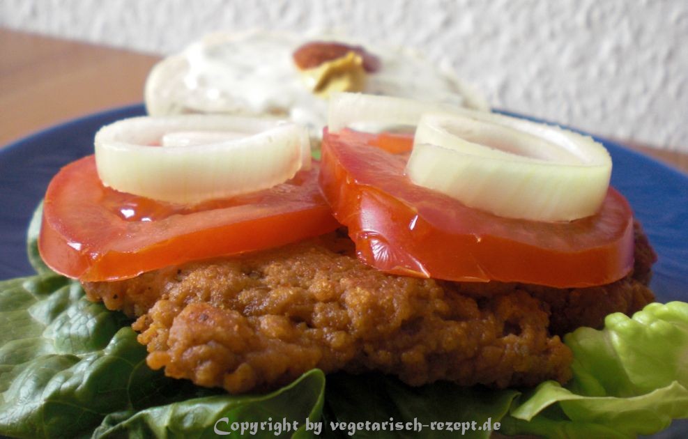 Oder Du machst Dir einfach ein Seitan-Schnitzel-Sandwich. Das kann man auch prima vorbereiten und z.B. als Vesper mitnehmen.