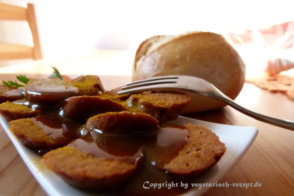 Oder die selbstgemachte Seitan – Currywurst kann so aussehen: (Klick auf's Bild, dann wird's groß)